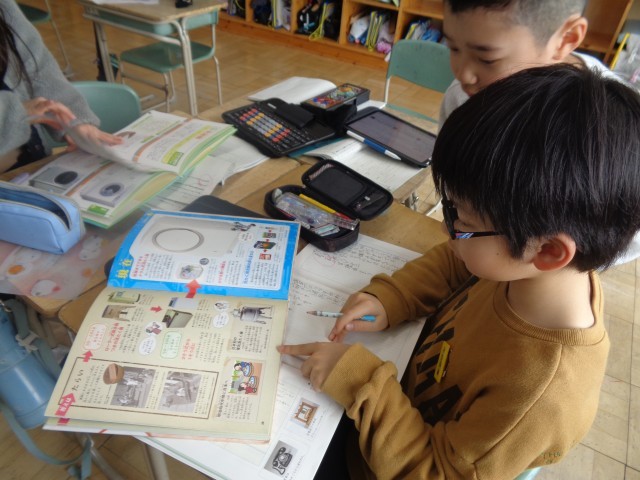 国語の授業で、道具のうつりかわりの調べ学習を行いました。