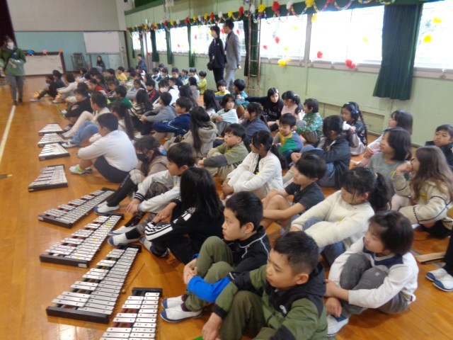 卒業生に向けて、リコーダーと鉄琴の合奏を行いました。
