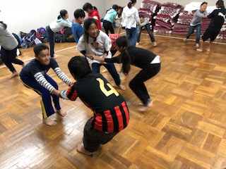 その10 雨のため、予定していたキャンプファイヤーが行えませんでしたので、カウンセラーさんによる、ゲーム大会を行いました。
