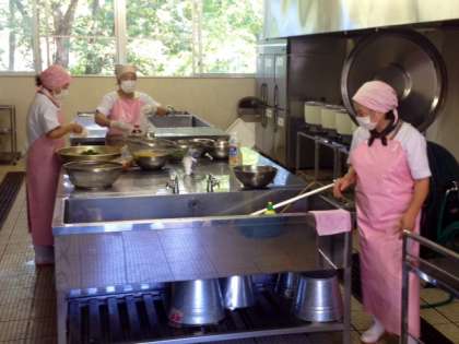 先生方とまかないさんが手分けして、子どもたちの笑顔を思い浮かべながら、一生懸命に働いています。
