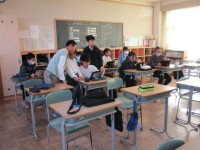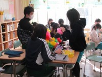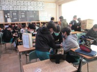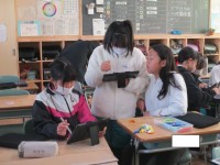 6年生がクラスを解体して4つの教室に分かれて調べ学習や発表の準備をしていました。各クラスの様子を写真でお伝えします。