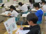 5年3組では、写真を見て整頓する方法を考えていました。いらないものをどうしたらよいか教科書などの資料を見て調べていました。