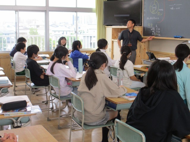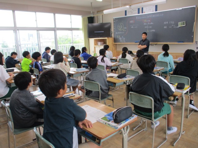 6年1組では、社会で「幕府はどのように265年間百姓を統治したのか」という課題について考えました。まず、加賀藩100万石と安城の近くにある岡崎藩5万石、西尾藩6万石の大きさから人口を比べていました。