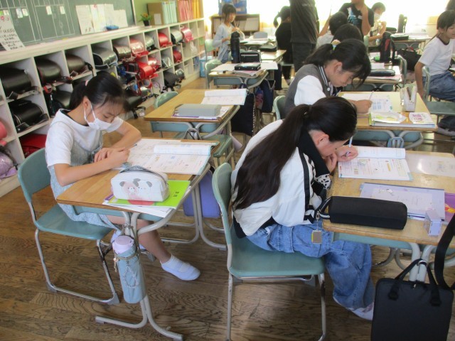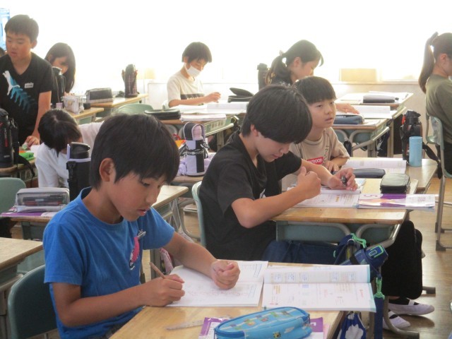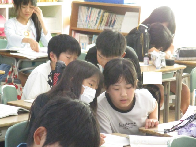 5年2組では、算数の復習をしていました。何をもとの数と考えていったらよいか問題を解きながら確認していました。
