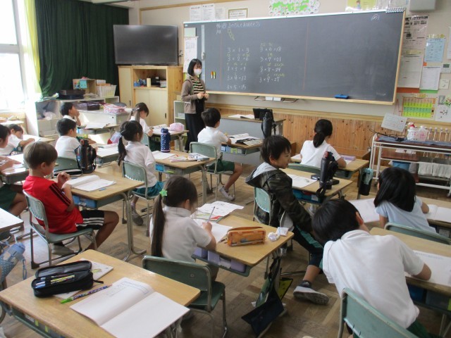 2年3組では、3の段の九九は答えが3ずつ増えていくことを使って、九九を作ってノートに書いていました。書けた子から口に出して読み、覚えていました。