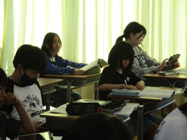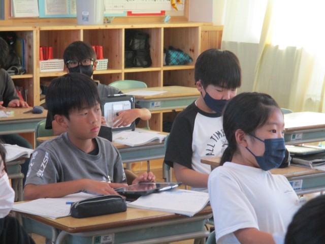 6年1組では、「プラスティックのごみ問題を解決するためにできることを考えよう」というめあてをもとに、考えました。子どもたちから「タブレットで調べていい」と声が上がり、調べ学習が始まりました。