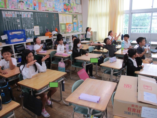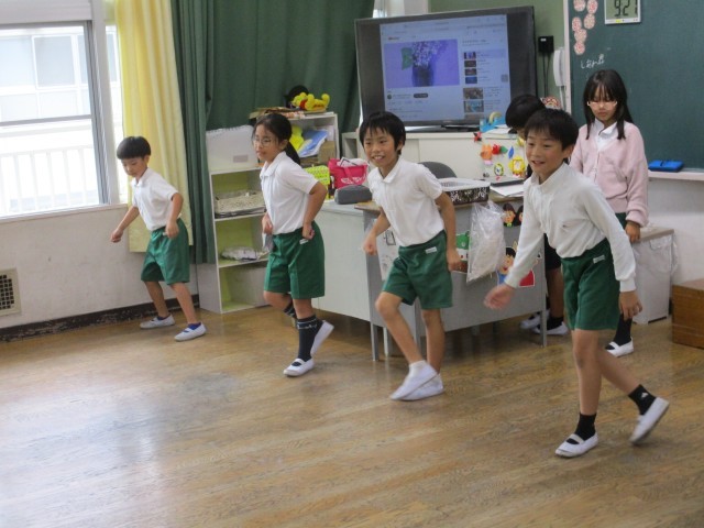 3年4組では、運動会の音遊を動画に合わせて行っていました。前に出て格好良く踊る子を見て、座っている子も自然に体が動いていました。