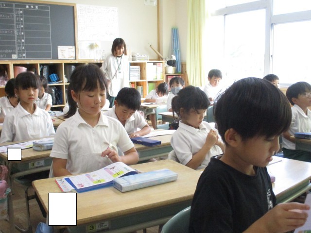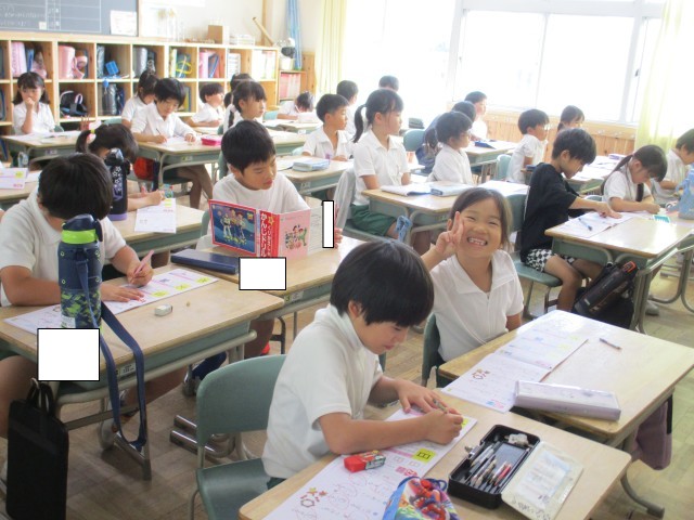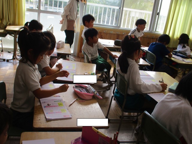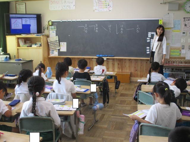 1年3組では、漢字の学習をしていました。どんな筆順で書いたらよいのか一文字ずつみんなで確認していました。