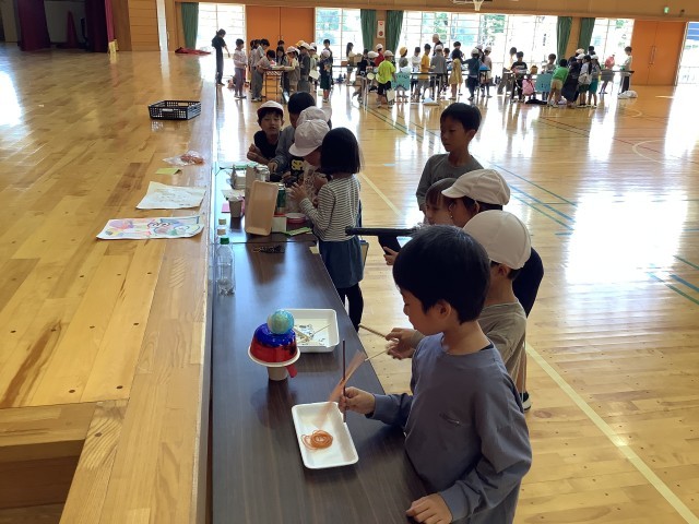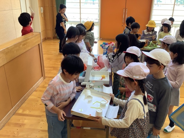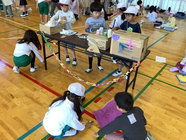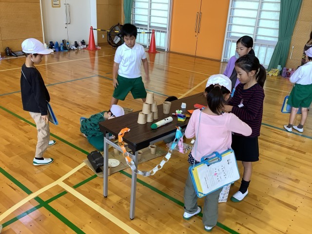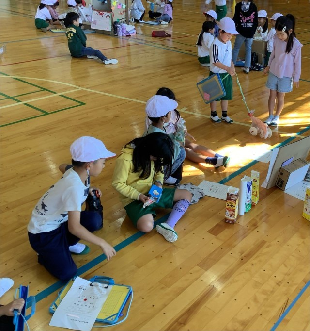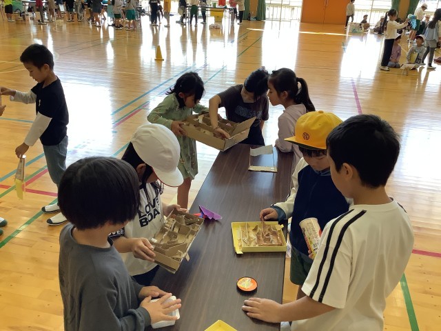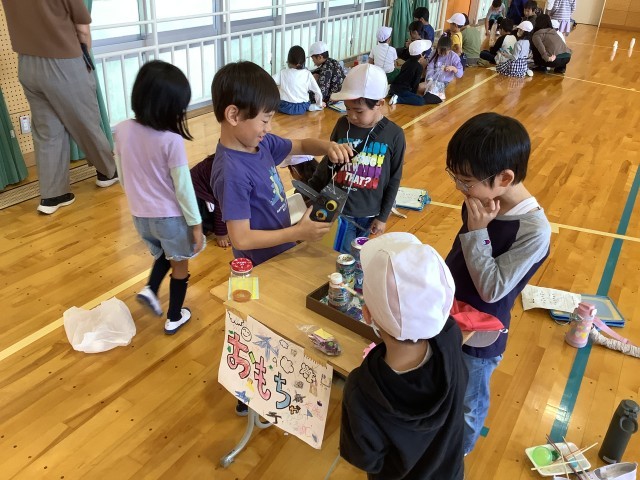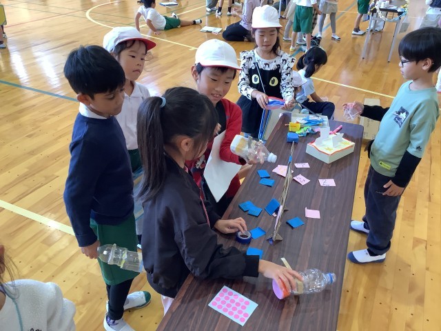 今日の3、4時間目に2年生とおもちゃパーティーを行いました。2年生が作った、工夫あふれるおもちゃで楽しく遊びました。