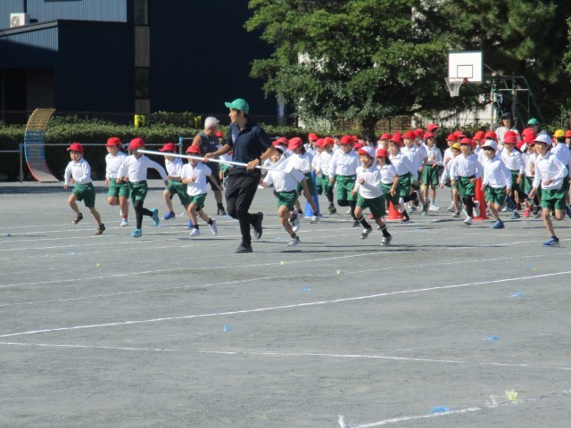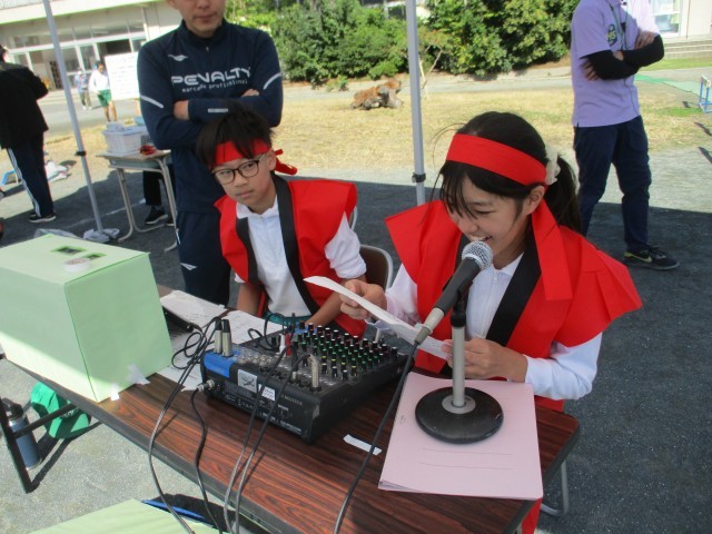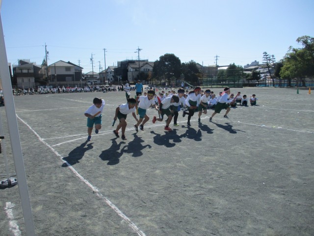リレーと競争の様子です。アナウンスの係の子がスムーズな口調で競技の説明や途中経過などを話してくれました。
