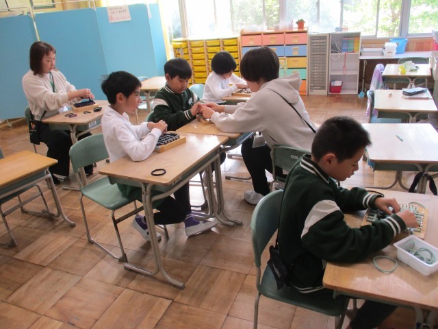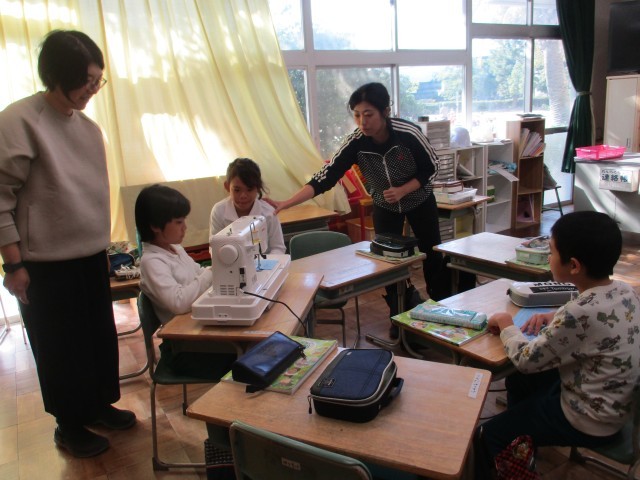 いずみ学級では、高学年は家庭科でミシンの使い方を学んでいました。ミシンに糸を通して練習布を縫いました。中学年は、コースターづくりに取り組んでいました。もようや色を工夫しながら一生懸命作っていました。