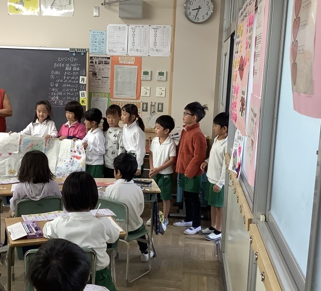 2年生のおもちゃパーティーのお礼をしに行きました。2年生の皆さん、楽しい時間をありがとうございました。