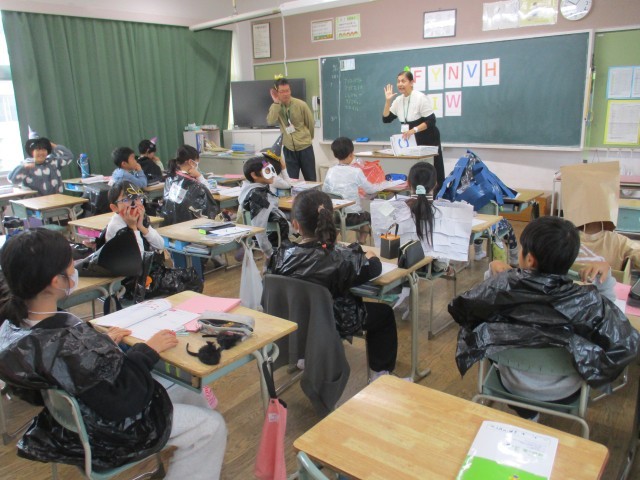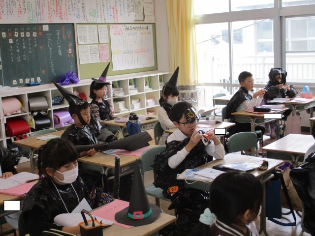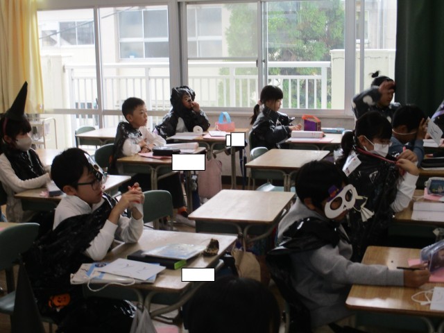 ハロウィンの衣装を着けて楽しそうに授業に参加していました。