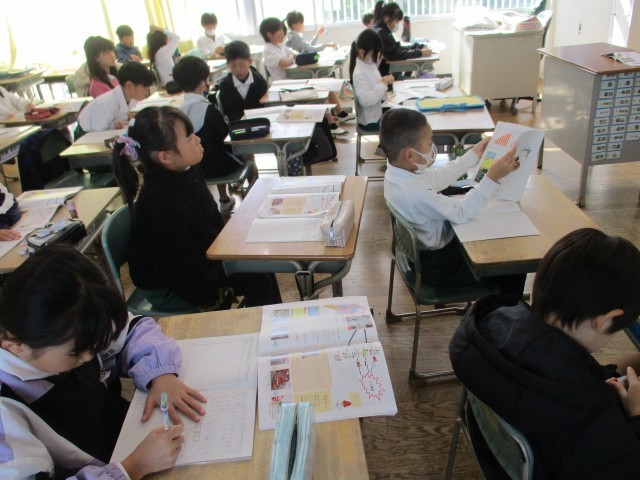 3年2組では、今度見学に行く消防署の学習をしていました。消防署の司令室の調べ学習をした後、見学でどんなことを聞いてきたいか考えていました。