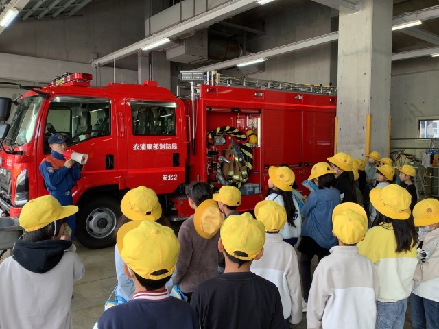 3年生は、本日消防署見学に行きました。消防署の色々な秘密を知ることができ、みんな真剣に消防士さんのお話を聞いていました。