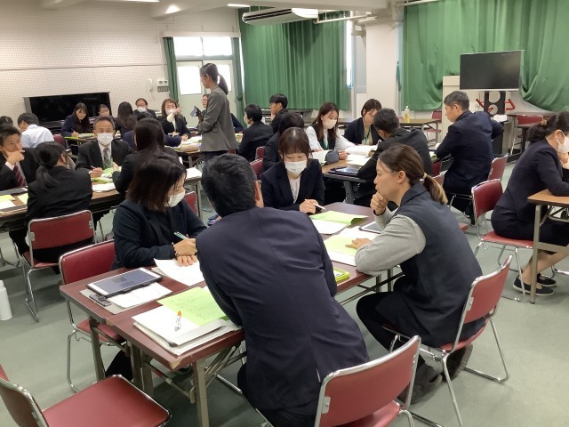6年4組の研究授業を受けて、安城市の理科指導員を招き、よりよい授業にするためにどうしたらよいか協議会をしました。子どもたちのがんばりを支える教師の発問や授業の流れについて意見を出し合い、自分の授業で生かしていくヒントを学ぶことができました。