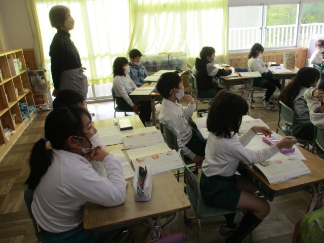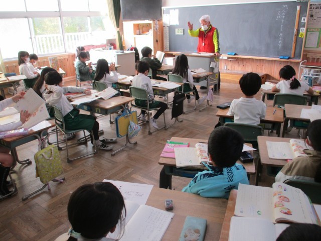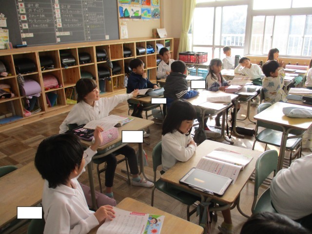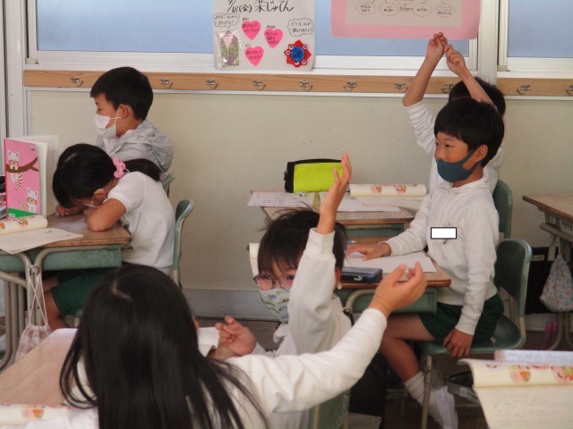2年4組では、人がすることを表す言葉の学習をしていました。だれがどんなことをしたのか主語と述語に気をつけて文を作っていました。
