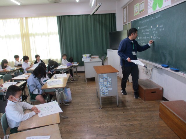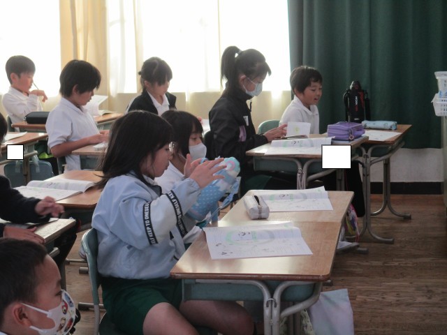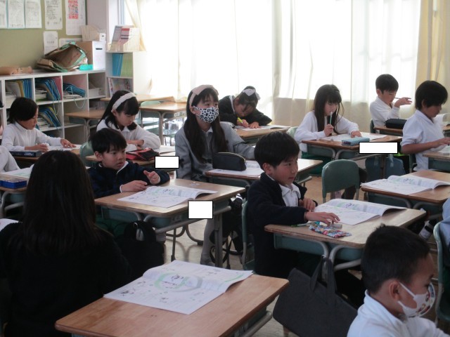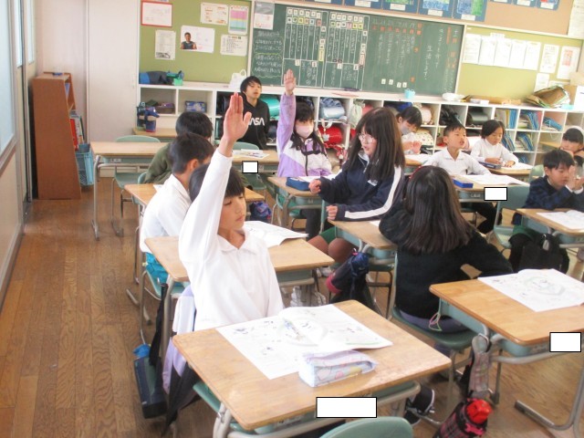 3年2組では、学級活動で規則正しい生活について考えていました。「たけしさんの一日」という資料を見て健康を保つためにどんな生活をするとよいか意見を出し合っていました。