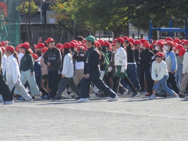 いちょうが美しく色づきました。さわやかな気候のもと、今日から持久走記録会に向けて「ランニングタイム」が始まりました。自由参加ですが、たくさんの子が参加しました。みんな目標に向かって一生懸命走っていました。