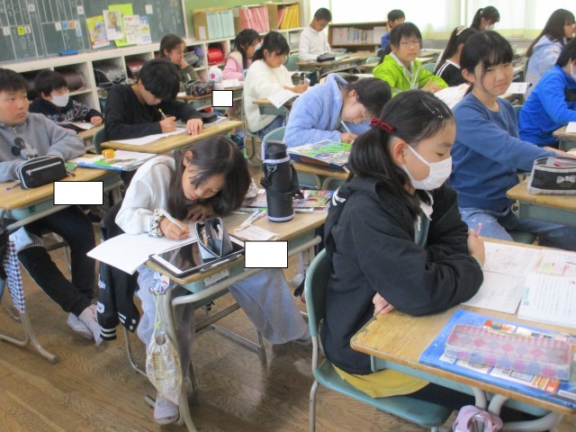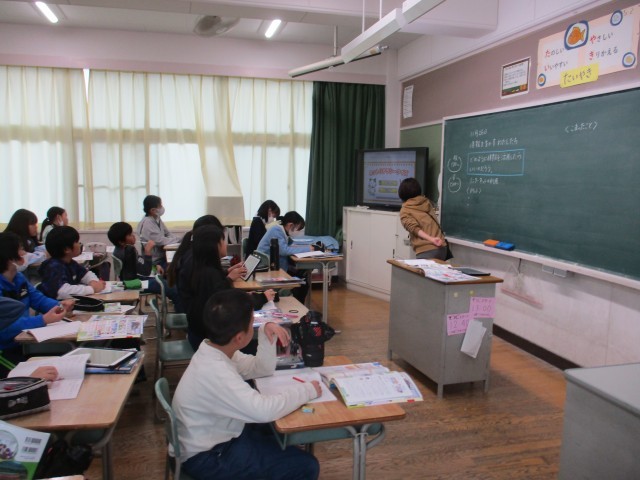 5年2組では、「どのように情報を活用したらよいのだろう」というめあてで学習をしていました。インターネット利用のメリットとデメリットを出しながら考えていました。