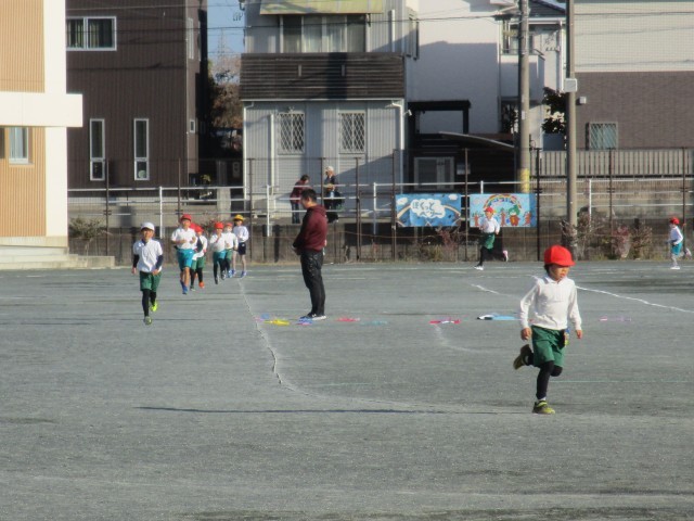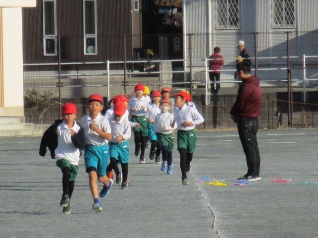 3年2組が運動場で持久走を行っていました。授業でも目標を持って頑張って走っていました。