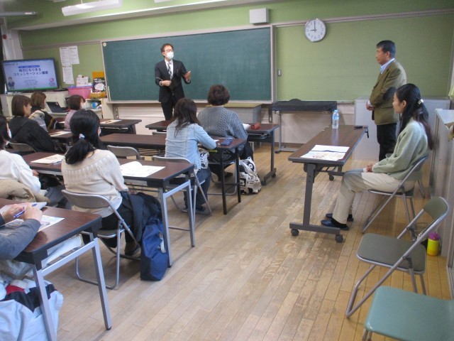 PTA、健全育成会の主催のもと、日本ゲートキーパー協会の理事長の大小原利信様を迎え、「ゲートキーパー講座・家族編」が行われました。地域や保護者などが参加し、「できないことに目を向けがちだが、できることを認める」、「『ありがとう』で子どもに安心感を与え、チャレンジできる子に」など貴重な話を聞きました。参加者からは「早速取り入れていきたい」などの意見が出ていました。