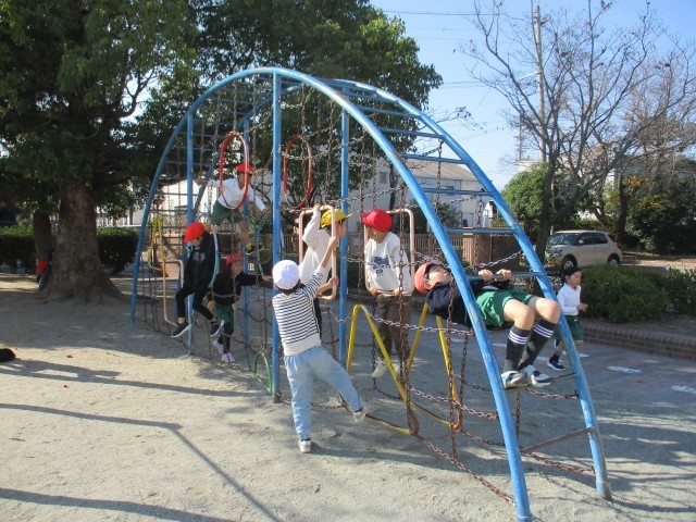 12月初日は、暖かい日になりました。今日も長放課にランニングタイムが行われました。だいぶ慣れてきて、スムーズに動いて走る練習をすることができています。遊具や縄跳び、鉄棒で体力をつけている子もいました。