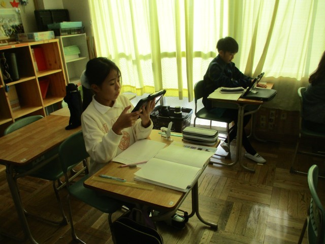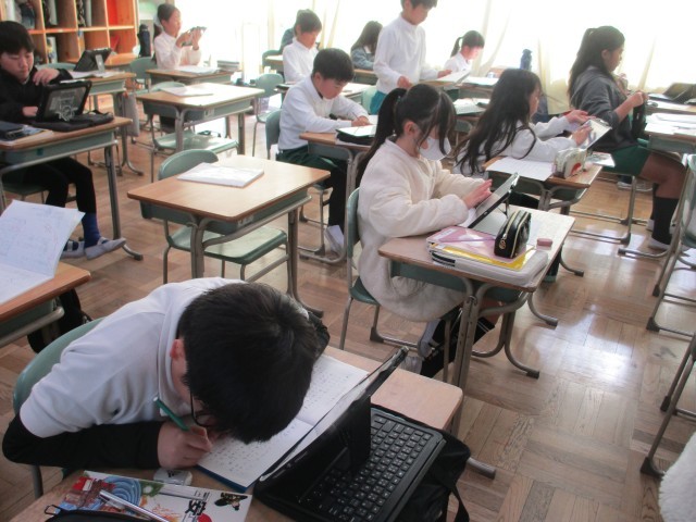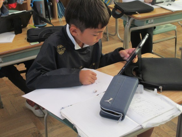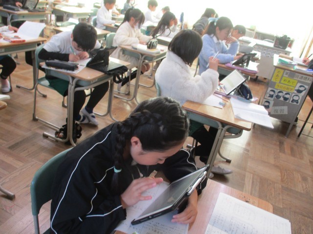 4年3組では、伝統工業について調べたことを新聞形式でまとめていました。ノートやタブレットを見ながらわかりやすくまとめていました。
