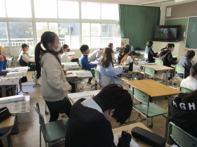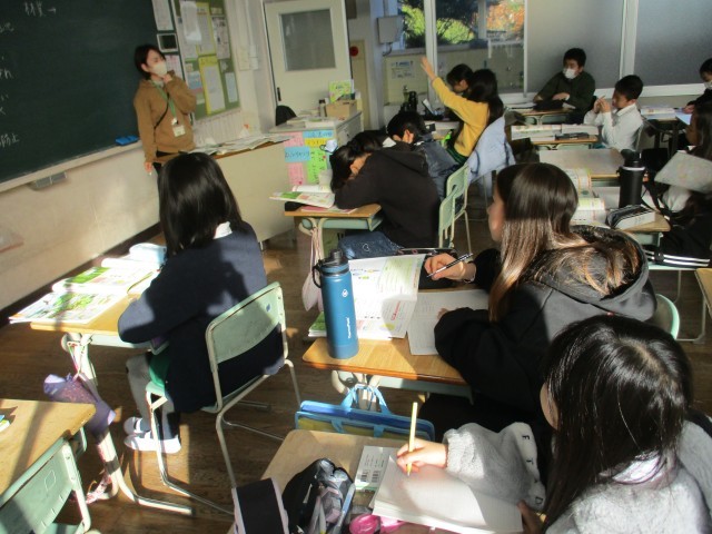 5年2組では、森林を守るためにできることを考えていました。その中でも、「林業」を取り上げるために、「林業」の仕事について知っていることを発表していました。