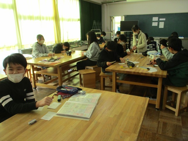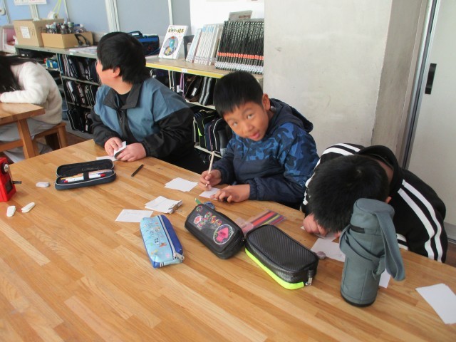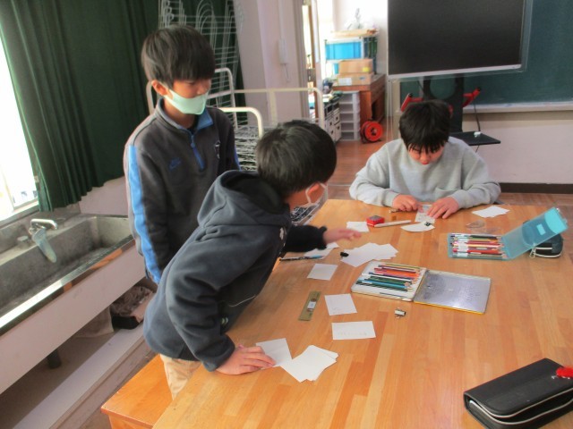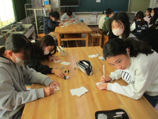 5年1組が図工室で、動きのある絵「ぱらぱらまんが」を作っていました。小さい紙それぞれにどんな絵を描いていったら動きのあるものになるのか閑雅ながら楽しんで取り組んでいました。