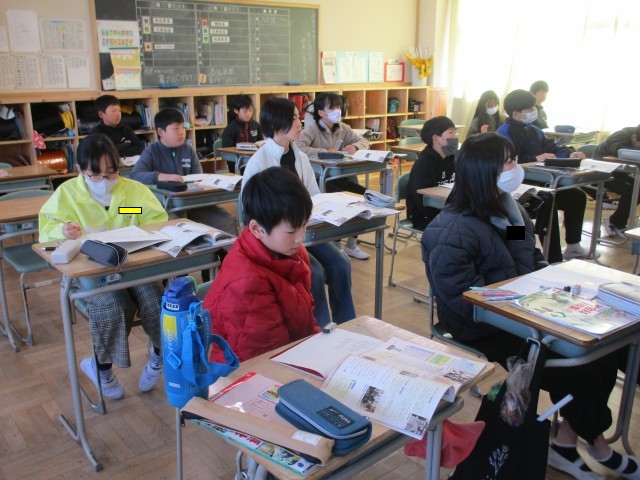 6年1組では、明治時代の文化について学んでいました。「夏目漱石」「芥川龍之介」などの作家の名前が出ると、教師が知っているか問い、子どもたちは「名前だけ聞いたことある」などと反応していました。教師から「芥川賞の芥川だよ」と教えてもらうと、「へえ」と驚いた様子でした。