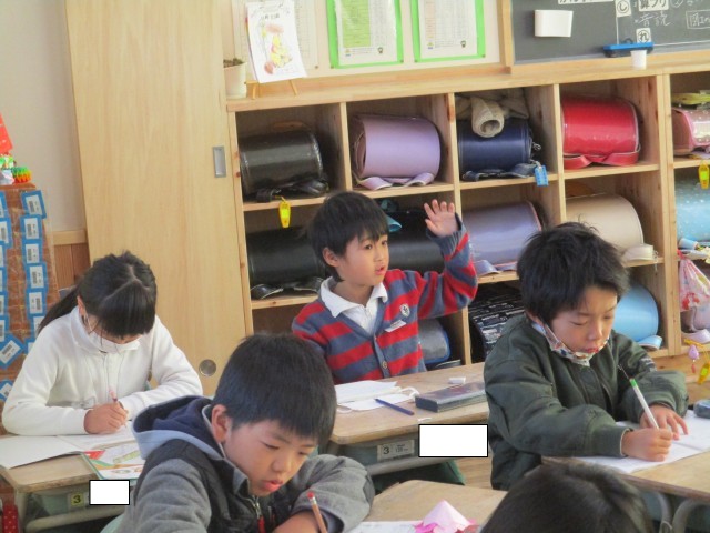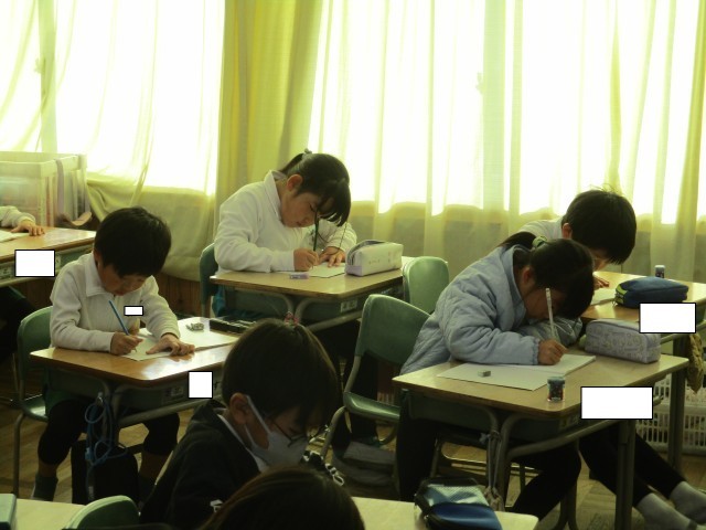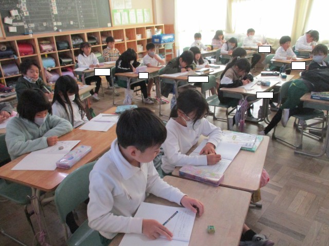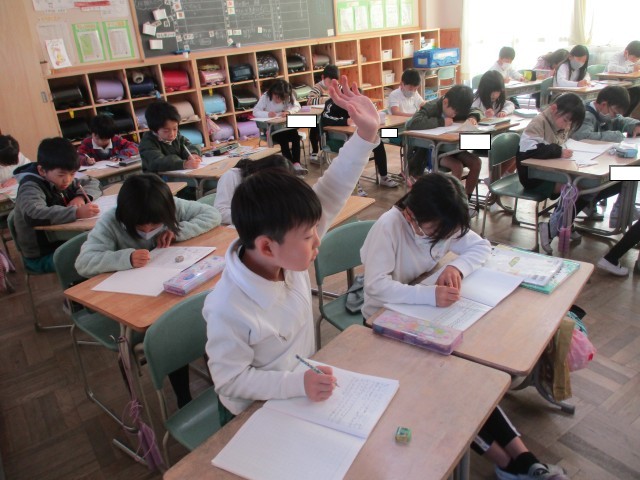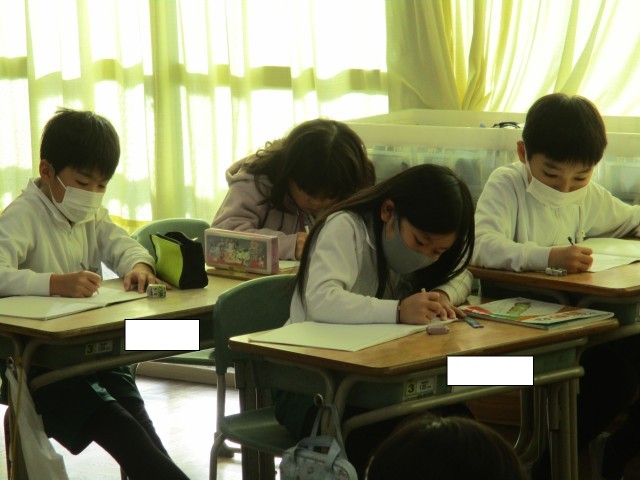 2年4組では、算数の学習に入る前にウォーミングアップを行っていました。ノートのマスに1~50までの数字を速く書いていました。書き終わると誇らしげに手を挙げ教師からタイムを教えてもらいました。