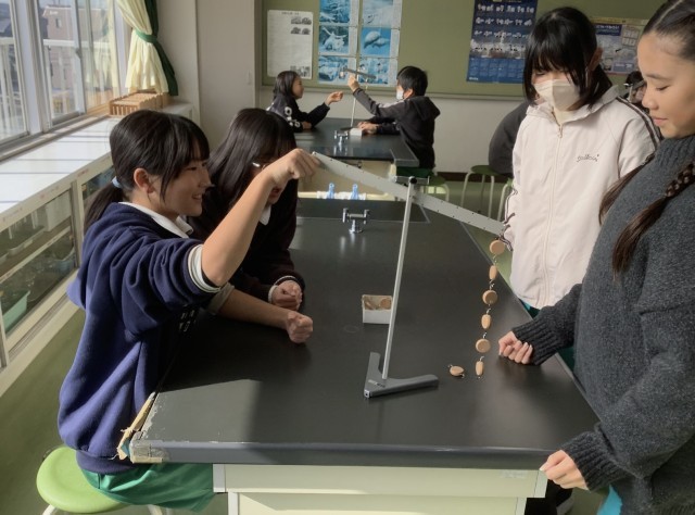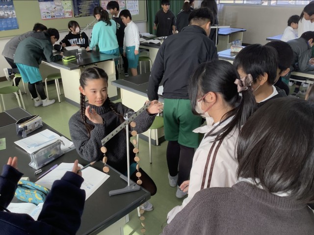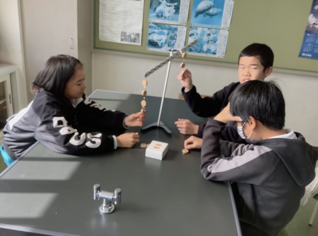 6年2組では、実験用てこを使って、水平につり合うときのきまりを見つけて実験を行いました。