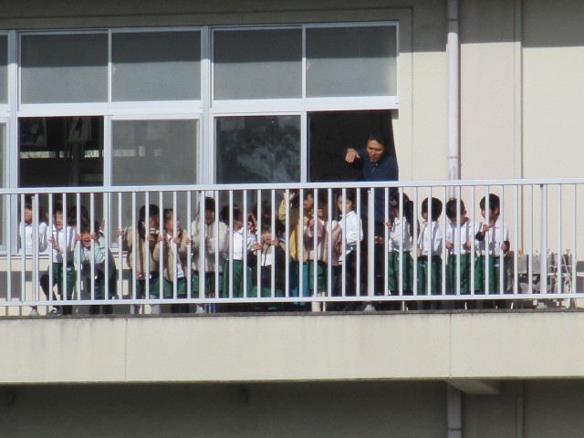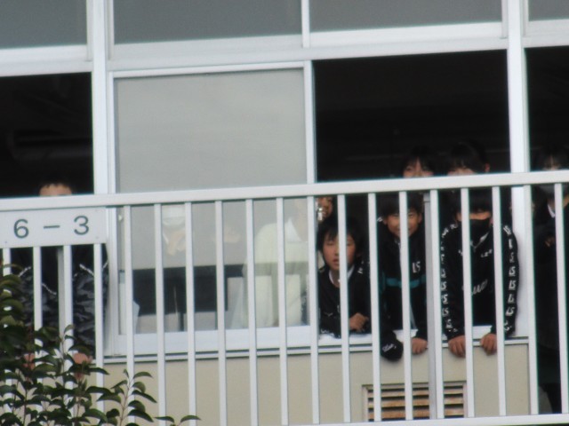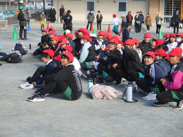 持久走記録会の応援の様子です。同じブロックの子やペア学年の子などに大きな声援や拍手をおくっていました。