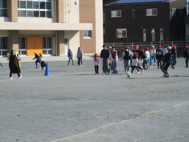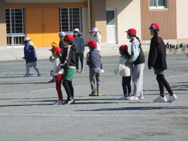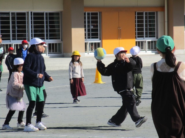 6年2,3組と1年3組がペア活動を行っていました。ドッジボールをしていましたが、6年生が1年生をやさしくリードしている姿が印象的でした。