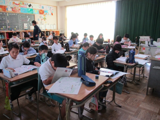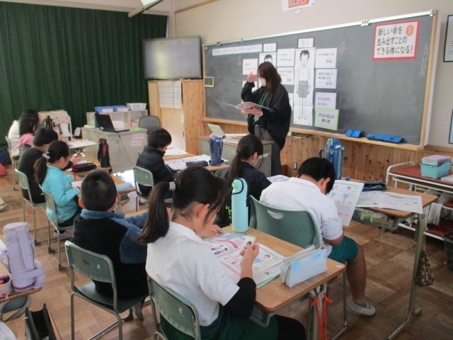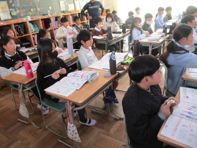 4年1組では、養護教諭が保健の授業をしていました。子どもたちは、思春期の男女の体の変化を調べながら学んでいました。