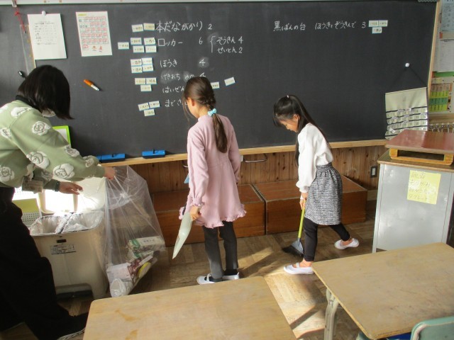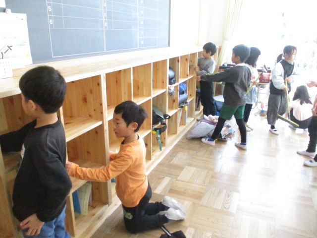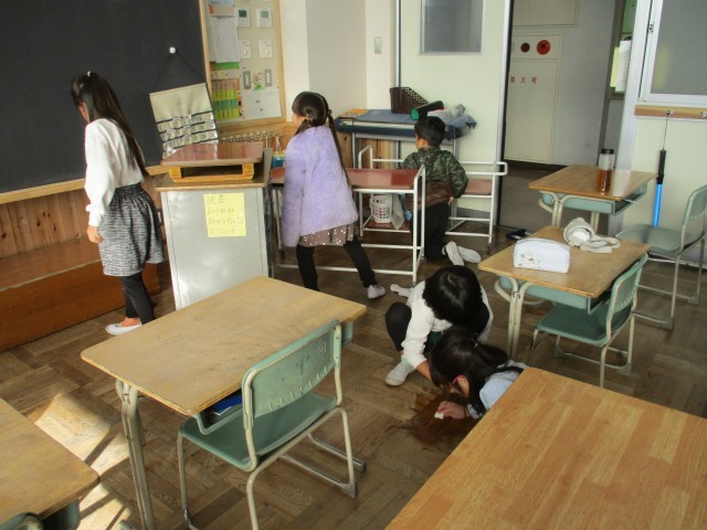 あと2日で2学期も終わりです。2年3組では、大掃除をしていました。ロッカーや床をぴかぴかに磨いたり、本を整頓したりしていました。子どもたちは教室をきれいにしようと頑張っていました。