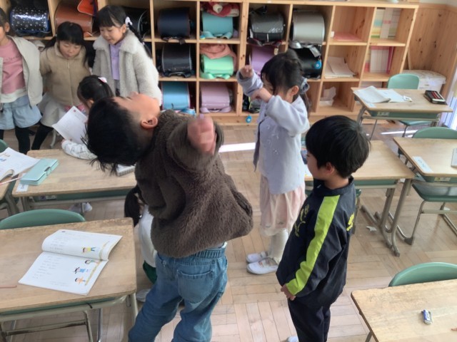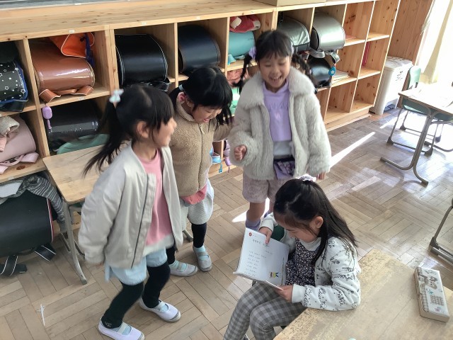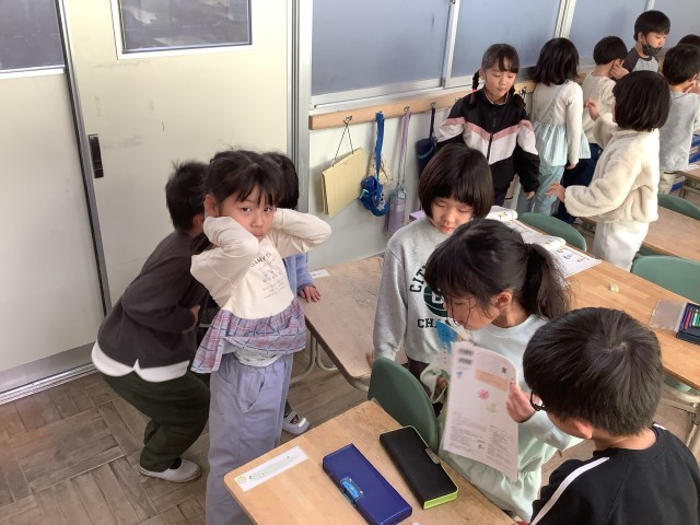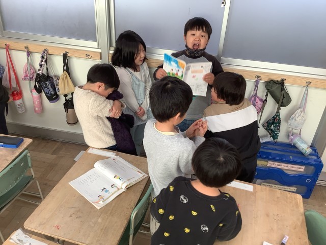 2学期の最後の国語では、詩の音読を行いました。ミミズになりきって、体を使って表現をしました。