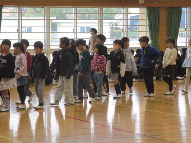 子どもたちが入場してきました。1年生もしっかり並んで入場していました。高学年の待ち方もさすがです。