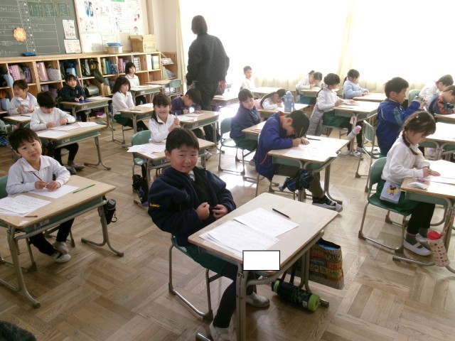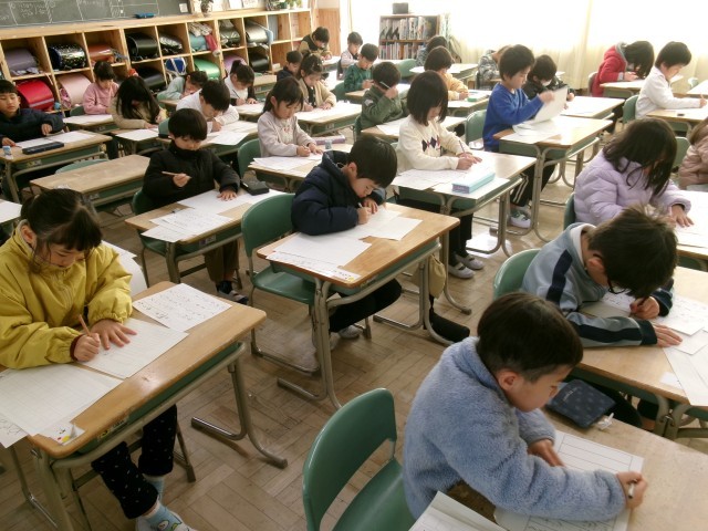 1年生の書き初め会の様子です。