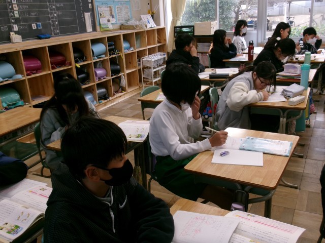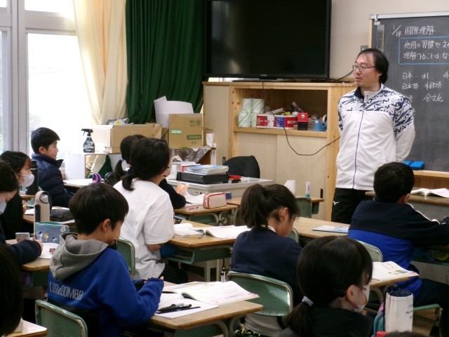 5年3組では、他国の文化や習慣を大切にすることがなぜ大切なのかを考えていました。最後、教師から他国の意見を大切にするあまり。自国の文化が脅かされることになったらどうするのかと問われ、子どもたちは真剣に考えていました。