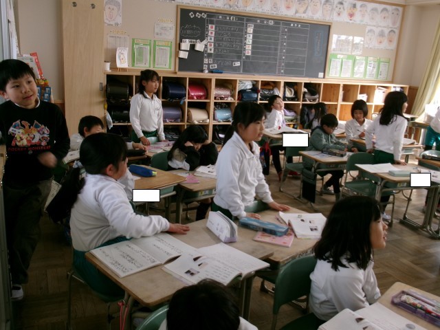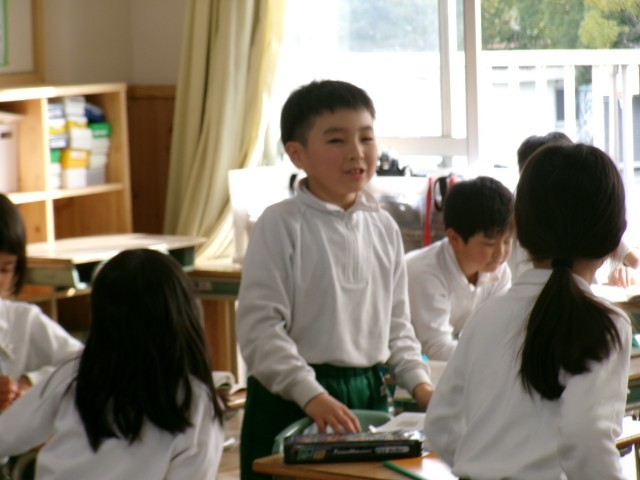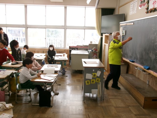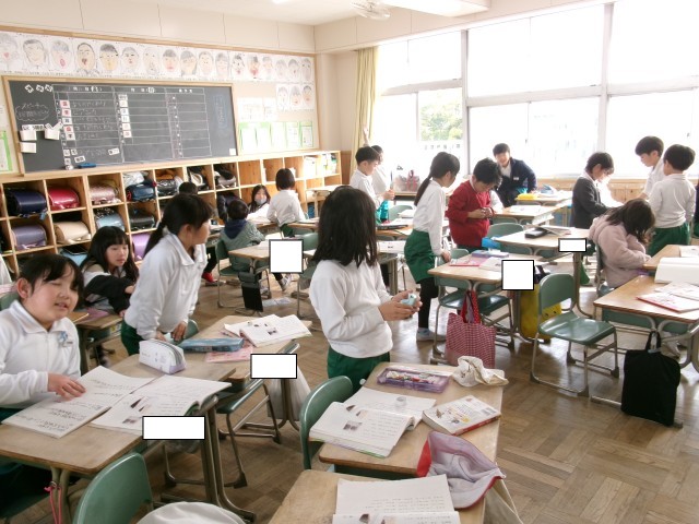 2年4組では、「あなのやくわり」の学習をしていました。「あな」があるものを子どもたちが発表し、教師が前に板書していました。「歯ブラシの穴」など細かいところに気が付いて発表している子もいました。