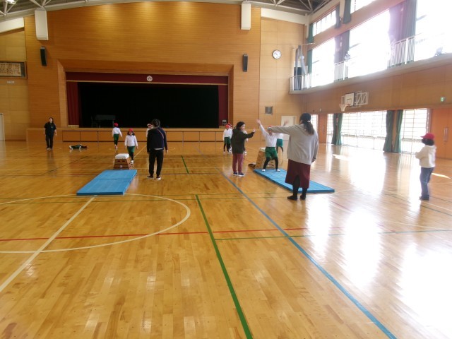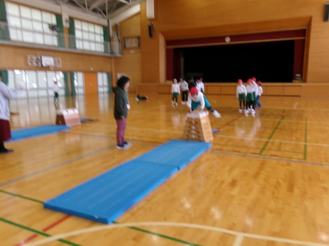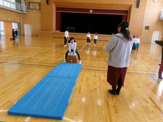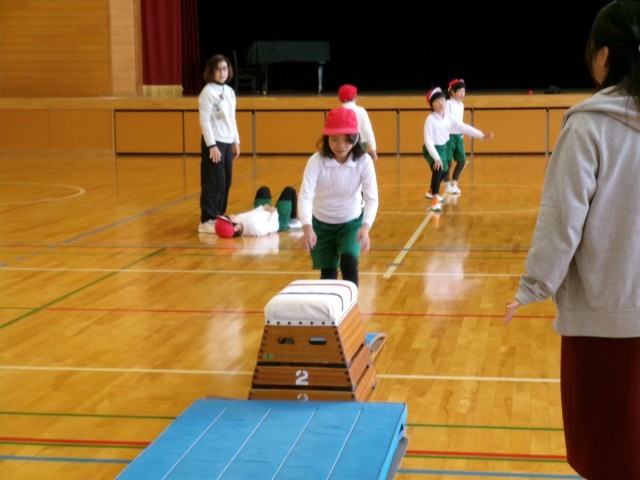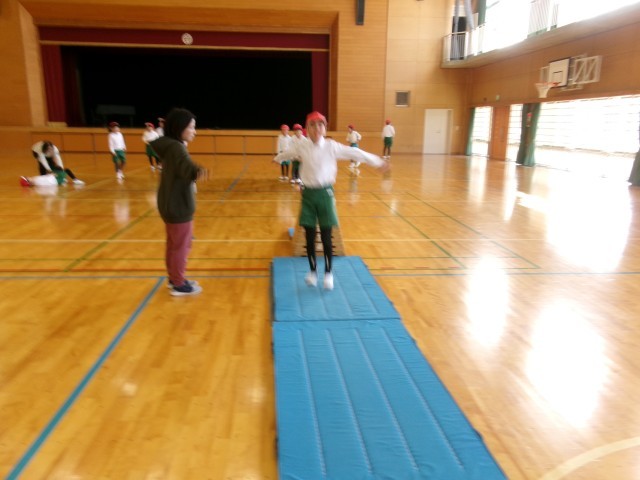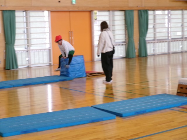 いずみ学級では、跳び箱に挑戦していました。開脚跳びやまたぎ方や手のつき方などどうやったら跳べるようになるか確認しながら学習をしていました。ストレッチで体を動かしている児童もいました。