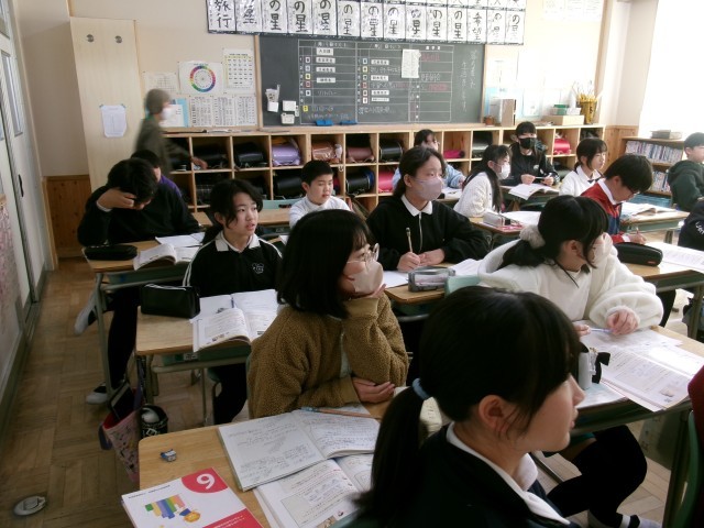 6年2組では、「食といのち」の学習をしていました。一生の間の心臓の鼓動を求める問題では、とてもたくさんの数心臓が動いていることが分かり驚いていました。