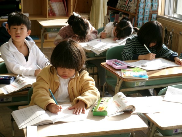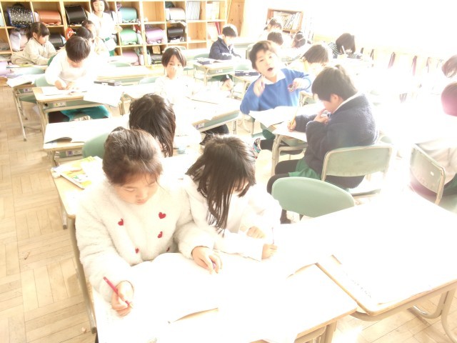 1年1組では、「おなはしをかこう」の学習をしていました。友達と会話しながら話を膨らませたり一人でじっくり考えて書いたりしていました。