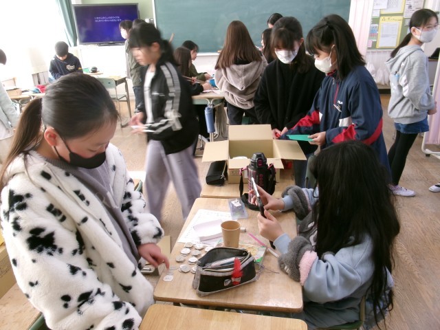 5年2組では、新1年生を迎えての交流についてリハーサルを行っていました。本物の屋台みたいなグッズや楽しいクイズなど工夫を凝らして準備を進めていました。