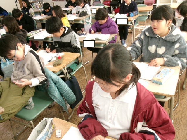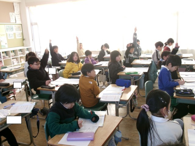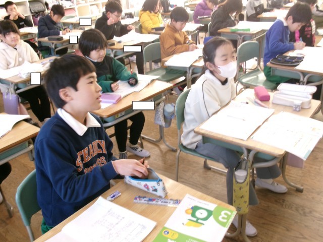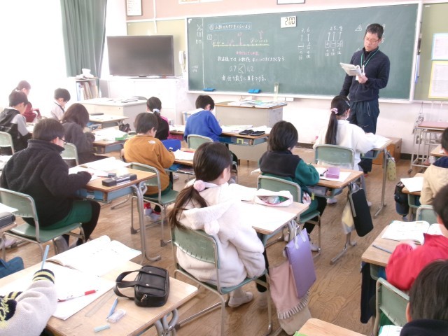 3年1組では、小数の問題に取り組んでいました。答え合わせでは、問題を読んだり答えを発表したりテンポよく学習を進めていました。