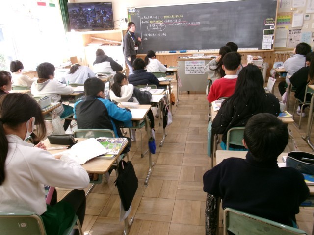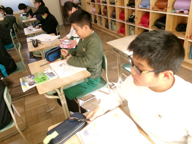 5年4組では、工業の学習をしていました。自動車工業が活発な県をみんなで予想していました。教師が出すヒント「関東」などをもとに口々に県名を答えていました。
