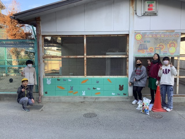 うさぎ小屋の壁をペンキで塗り、明るくかわいい雰囲気にしました。