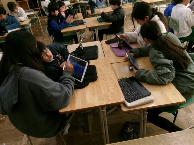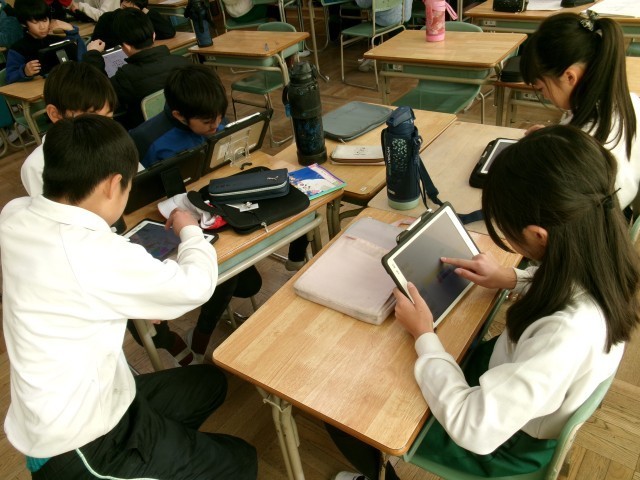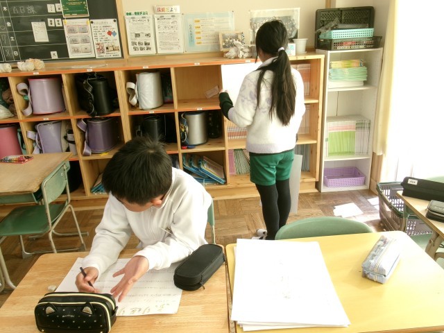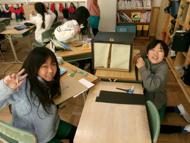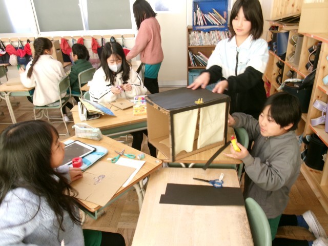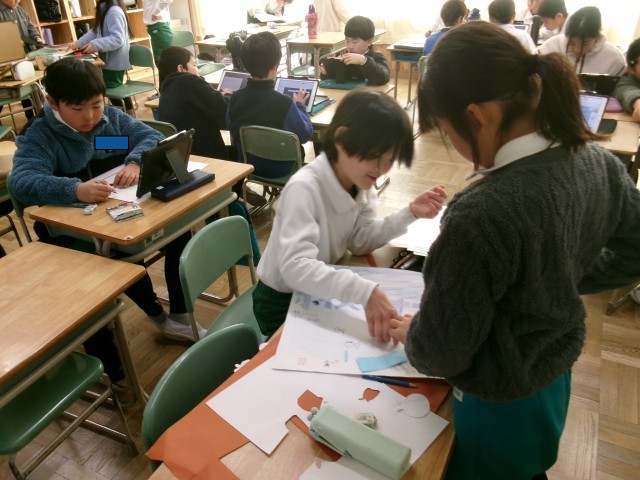 4年3組が学習発表会の準備をしていました。高学年になると、様々な方法で調べたことを発表しようと工夫をこらしていて、楽しい仕掛けがいっぱいでした。当日が楽しみです。